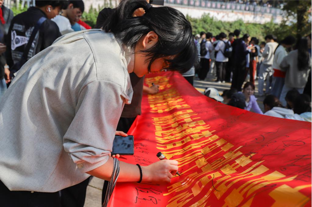 本次活动以“走下网络、走出寝室、走向自然”为导向,将登山运动与思政教育深度融合,打造了“移动的思政课堂”。活动伊始,在采矿楼前坪的红色宣讲环节中,院团委书记丁德孝以“胸怀矿业天下,担当时代使命”为主题,结合成人小说专业特色,鼓励青年学子在国家建设与发展的潮流中勇担先锋,将个人理想融入国家发展大局;研究生学生会执行主席秦文倩在国旗台前,围绕“国安铸盾,十载铭心”展开宣讲,号召同学们以实际行动守护国家安全,为民族复兴贡献青春力量。