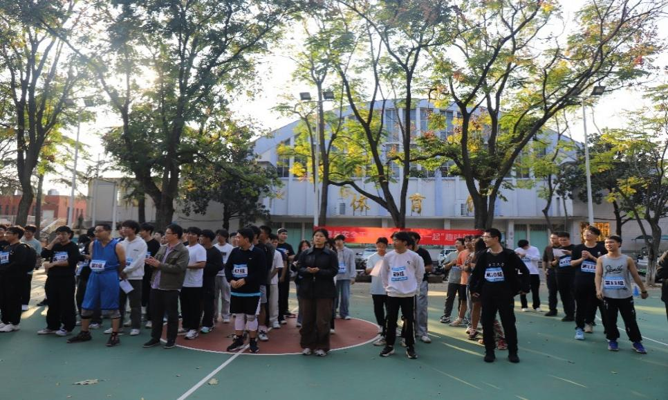 随后,体育教研部王帅老师宣读运动倡议。他倡议师生暂别课堂身份,享受运动快乐,增进彼此情谊;同时呼吁大家文明参赛,尊重规则,构建和谐赛场。紧接着,裁判代表宣读比赛规则,参赛选手在工作人员带领下完成热身操,趣味篮球赛正式开启。