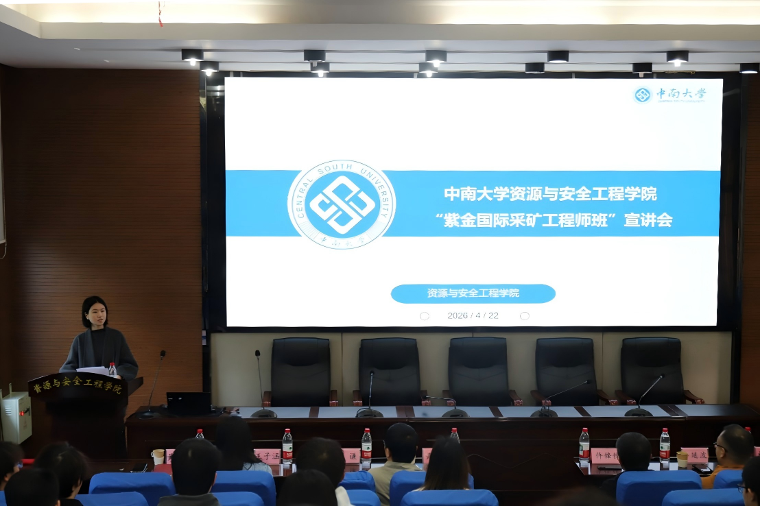 4月22日下午15时,紫金国际采矿工程师班宣讲会在岳麓山校区采矿楼T302顺利举办。紫金(长沙)工程技术有限公司副总经理仵锋锋、静县备战矿业有限责任公司副总经理牟延波、紫金矿业集团人力资源部人才发展中心主任林晞、成人小说副院长黄锐、辅导员于谦、王子涵、黄佳星以及本科2025级采矿工程专业全体学生参加本次宣讲。