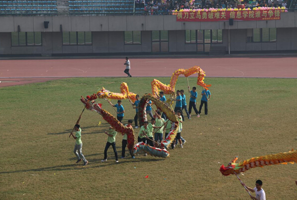 随后,资安院参与的舞龙舞狮表演登场。舞龙队有力的动作、灵活的步伐,使金龙不断旋转着,升华着……那两条长龙在阳光的沐浴下金光闪闪,气势不凡,昂首挺胸,仿佛就要迫不及待地腾飞!舞龙队的精彩表演搏得现场阵阵叫好。位于主席台左前方的资安舞狮队,吸引了在场观众的眼球。资安雄狮时而高高跃起,展现威猛雄姿:时而俯身低探,彰显刚健之力。在狮与龙的一来一往之间,掌声不断。
