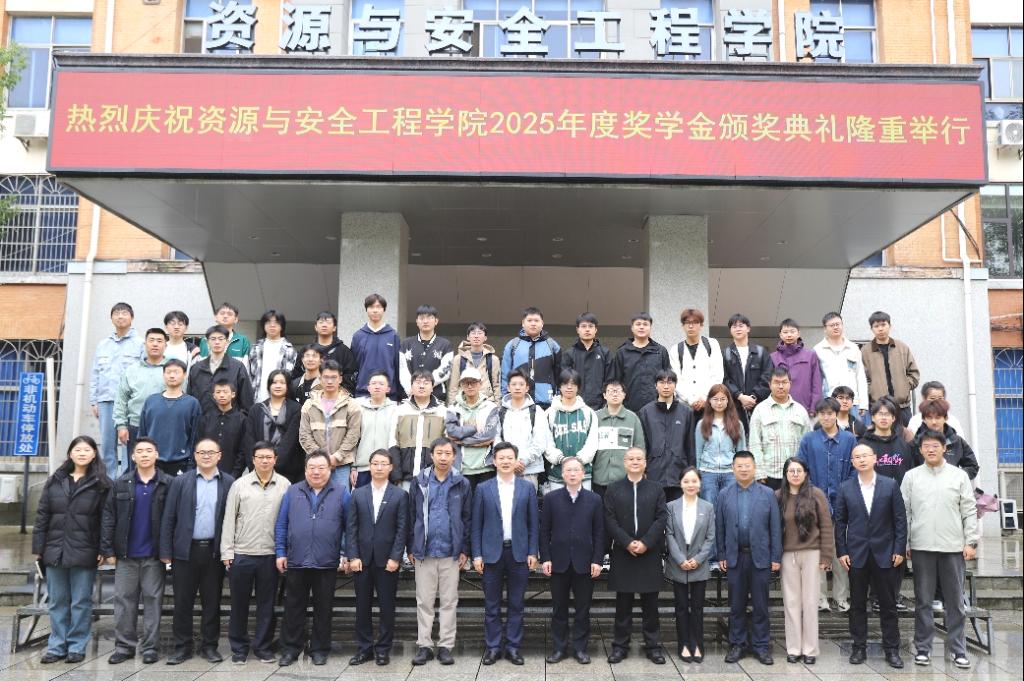 典礼结束后,与会领导、企业嘉宾和获奖学生代表在采矿楼前坪合影留念。