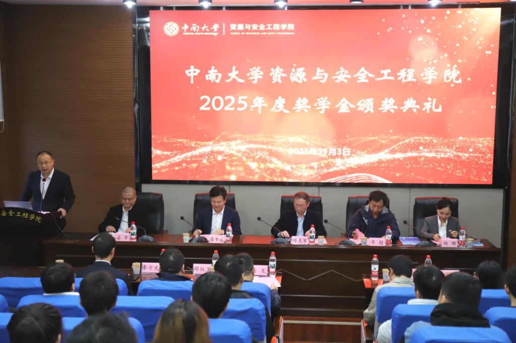 11月3日上午,成人小说2025年度奖学金颁奖典礼在岳麓山校区采矿楼T302隆重举行。金诚信矿业管理股份有限公司人力资源管理中心副总监李超,宏大爆破工程集团有限责任公司总经理助理杨珊、综合管理(党群)中心副总监李方元,飞翼股份有限公司技术总监姜寄、人力资源部部长马晶,成人小说