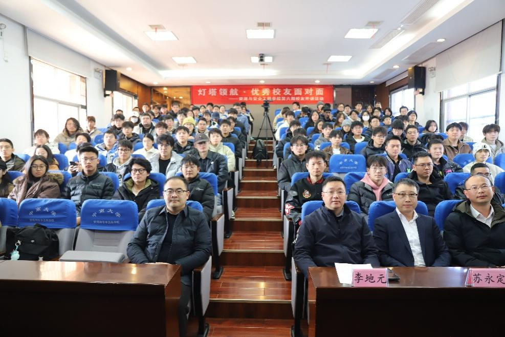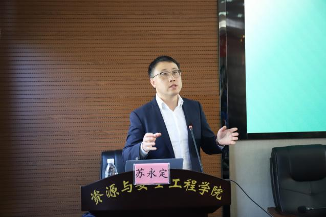 活动伊始,李地元副院长对苏永定校友重返母校表示热烈欢迎,简要介绍其从业履历和突出成就。他谈到,苏永定校友在矿业领域取得成就离不开常年坚守与奋斗,勉励在场同学不断夯实专业基础,坚定投身矿业行业信心,从校友成长历程中汲取奋进力量。