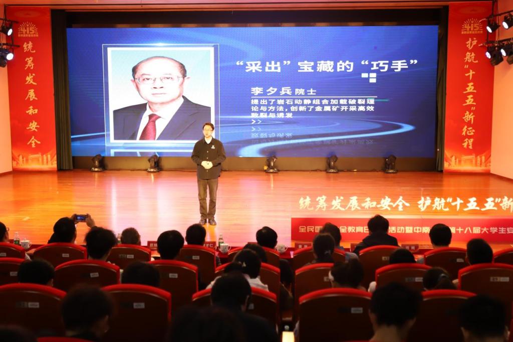 博士研究生史志勇以《掌中“矿藏”,国士守护——手机背后的矿产资源安全与科学家担当》为题,从手机中蕴藏的矿产资源切入,生动阐述了我国矿产资源安全面临的严峻形势,并讲述了何继善、李夕兵、邱冠周、赵中伟等院士在探、采、选、冶全产业链上的卓越贡献。他号召青年学子传承前辈胸怀家国的精神,练就过硬专业本领,守护国家安全。“国家安全,始于人人安全,始于我们对自身安全的守护。”史志勇的宣讲引发了现场强烈共鸣。随后,湘江新区国家安全宣讲员何吕传以科技安全为主题,聚焦机器人产业竞争,强调必须牢牢守护科技安全底线。