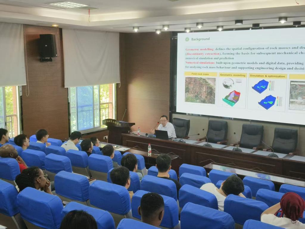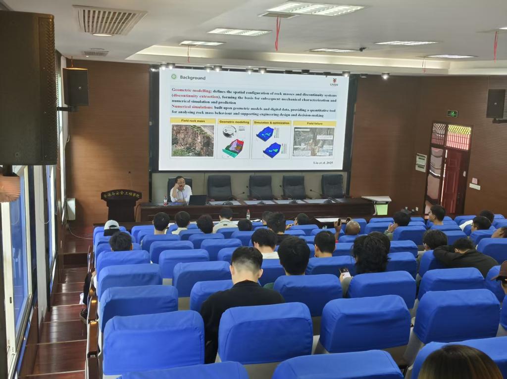 司光耀副教授为成人小说师生带来了题为《Automated Geological Discontinuity Extraction in Mining and Rock Engineering》的学术报告。报告会上,司博士重点介绍了其团队完成的两项研究工作:一是运用自动算法对矿山岩壁拍摄图像中的节理裂隙进行快速全面提取与识别,并将识别到的节理裂隙信息直接导入数值模型中,为后续数值模拟分析提供便利;二是针对钻孔岩芯图像处理技术,通过算法识别岩芯节理面的粗糙度等信息,利用拍摄得到的岩芯照片自动生成钻孔岩芯的数值计算模型。报告内容紧密结合工程实际,展示了岩石力学与人工智能技术交叉融合的实用价值。